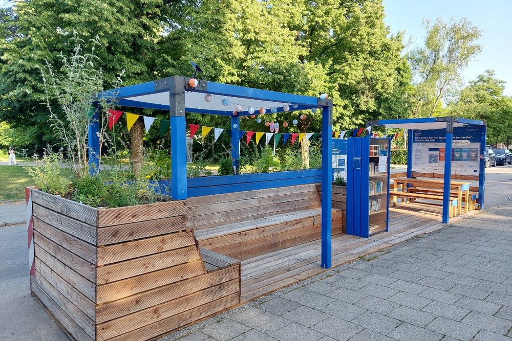 ASCEND’s parklet is back: This year the ASCEND parklet moved to a different location at the Harthof. Equipped with a bookshelf, seatings and a table to sit and take a rest / play a game, the parklet aims to show the citizens how many public space is used for two parking cars in the street. An opening event late June introduced the parklet to the neighbourhood. Also, we had thematic offers for children and our regular counselling-offers at the parklet.